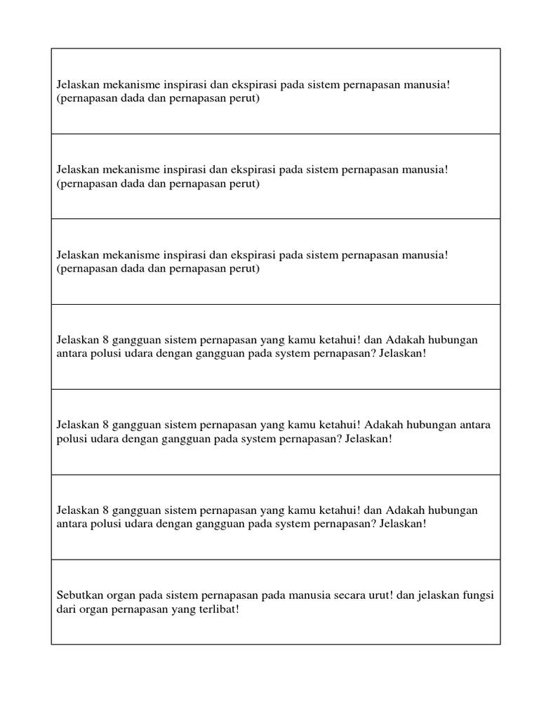 Sedangkan pernapasan dada sangat sering dilakukan karena manusia tidak perlu memikirkan bagaimana melakukan pernapasan, tetapi proses yang terjadi cenderung cepat dan dangkal. Letaknya tuh ada di bawah perut gitu. Udara lalu dikeluarkan dari sistem pernapasan dalam rangka ekshalasi. Jelaskan proses pernafasan perut : Pernapasan perut inspirasi terjadi jika otot diafragma berkontraksi sehingga letaknya sedikit mendatar. Masuk keluarnya udara dalam tubuh dikontrol oleh beberapa otot. Pada fase ini otot diafragma berkontraksi sehingga diafragma mendatar, akibatnya rongga dada membesar dan tekanan menjadi kecil sehingga udara luar masuk. Pernapasan merupakan proses pengambilan oksigen dan pelepasan karbon dioksida. Namun, volume udara luar tetap. Pernapasan secara tidak sadar yaitu, pernapasan yang dilakukan secara otomatis dan dikendalikan oleh saraf di otak sepertu pernapasan yang terjadi pada saat tidur. Perut, jelaskan proses pembentukan urine, jelaskan tentang penyakit pleuritis, kapasitas paru paru, kelainan pada sistem pernapasan, kelebihan pernafasan diafragma, lks mekanisme pernapasan dada dan perut, manfaat. Pernapasan perut pernapasan perut berlangsung dalam dua tahap, yaitu : Proses pernapasan pada manusia dapat terjadi secara sadar maupun secara tidak sadar.